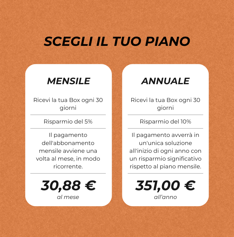 Scegli il tipo di abbonamento che preferisci. Con rinnovo Mensile ed un risparmio del 5% , oppure con rinnovo Annuale ed un risparmio del 10%.